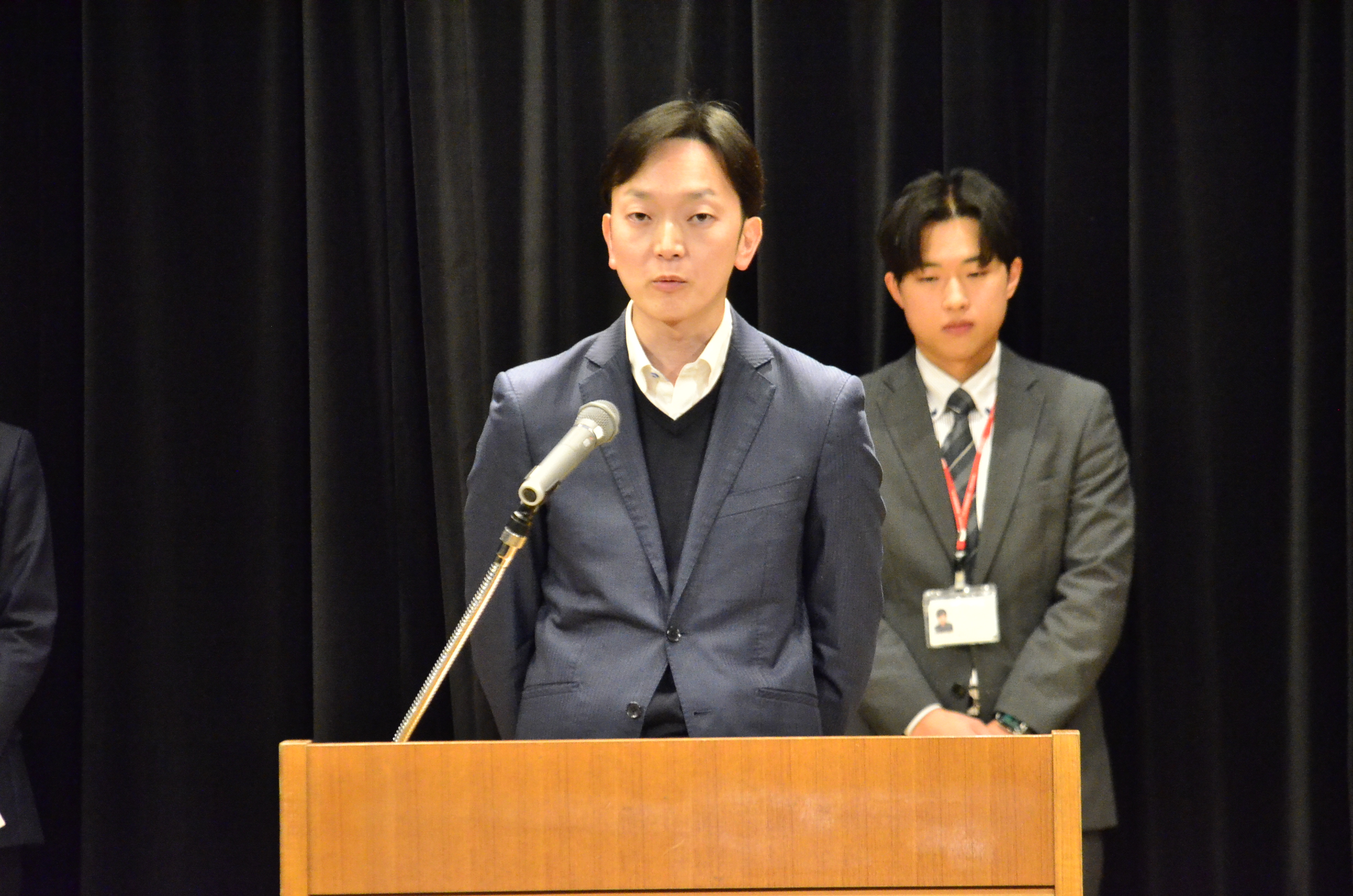 会議の最後には、弊社代表取締役の岡野が登壇。「高品質な賃貸サービスを提供していくためには、オーナー様との関係強化が何よりも大切である」と述べ、日々のコミュニケーションや提案活動を通じて、オーナー様により一層ご信頼いただけるパートナーを目指すよう全社員に向けてメッセージを送りました。また、仲介を担うミニミニと管理を担うミニテックがこれまで以上に連携し、オーナー様・お客様双方にとって価値あるサービスを提供していくことの重要性を強調しました。