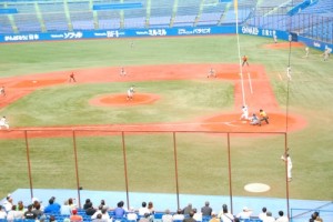 本日、神宮球場にて第60回全日本大学野球選手権記念大会の準々決勝、東洋大学 対 道都大学の試合が行われました。2大会連続優勝に向けて直走る東洋大学は、プロ注目の藤岡投手が先発。対する道都大学は佐藤投手がマウンドに向かいました。