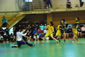 後半の中盤には最大5点差までリードを得た筑波大学でしたが、徐々に体力を消耗し、得意のカウンターからの得点が決まりません。少しずつペースを掴んできた東京女子体育大学は試合終了1分前に1点差まで詰め寄ります。こうなると会場のボルテージもヒートアップ。東京女子体育大学サイドの応援団の声も高まります。残り時間を見ながら最後の攻撃を展開する東京女子体育大学でしたが、筑波大学キーパーのシュートブロックに阻まれ、試合終了。1点差で第一回戦を落した筑波大学が、雪辱を晴らしました。