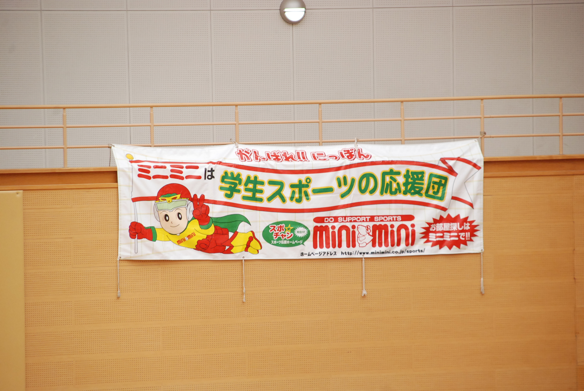 ミニミニは関東学生ハンドボール連盟のオフィシャル・サポートカンパニー。今日の試合にはミニミニの学生スポーツ応援横断幕を掲示させて頂きました。ミニミニは今後も学生ハンドボーラーたちを応援します。