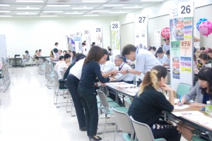 昨日、東京は池袋のサンシャインシティ文化会館3階にて、「日本語学校生のための専門学校進学相談会」が行なわれました。この相談会は、日本語学校に通う外国人留学生の中で、専門学校への進学を目指している留学生に対し、東京都専修学校各種学校協会や私立専門学校振興会に所属の専門学校が相談窓口を開き、学校案内を行なうもの。たくさんの留学生が来場し、私どもミニミニも「住居に関する相談窓口」を設けさせていただきました。