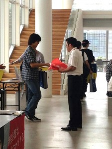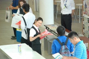そんな活気溢れる工学院大学のオープンキャンパスにミニミニも参加。スチューデントセンターの一角に「住まいの相談会場」を設置し、お部屋探しに関するアドバイス等をさせて頂きました。また来場された方々に、工学院大学八王子キャンパス周辺の学生向け賃貸物件チラシとクリアファイルを配布致しました。