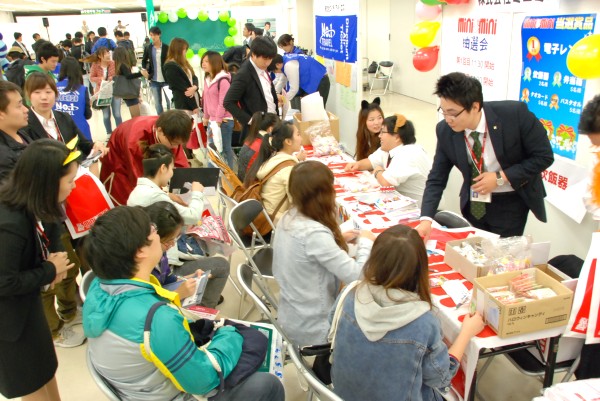 本日、池袋のサンシャインシティ文化会館で行なわれた「語学留学生フェア2013」に、私たちミニミニも留学生のお部屋探しの応援のため、今年も参加させて頂きました。このイベントは都内を中心とする日本語学校に通う海外からの留学生を招き、日本語学校卒業後の進路相談やお部屋探しのご案内、異文化交流などを目的としたもの。小雨の降る悪天候の中、数多くの留学生に脚を運んで頂きました。