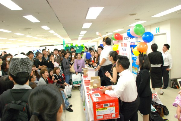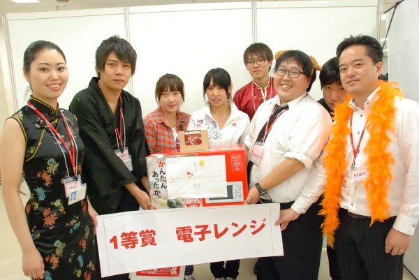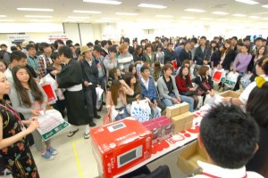 特に盛況だったのは毎年恒例の懸賞大会。3等はお弁当箱で2等は炊飯ジャー、そして1等は電子レンジといった具合に、様々な賞品をラインナップ。抽選の際には100名を超える留学生の輪が出来るなど、大いに賑わいました。