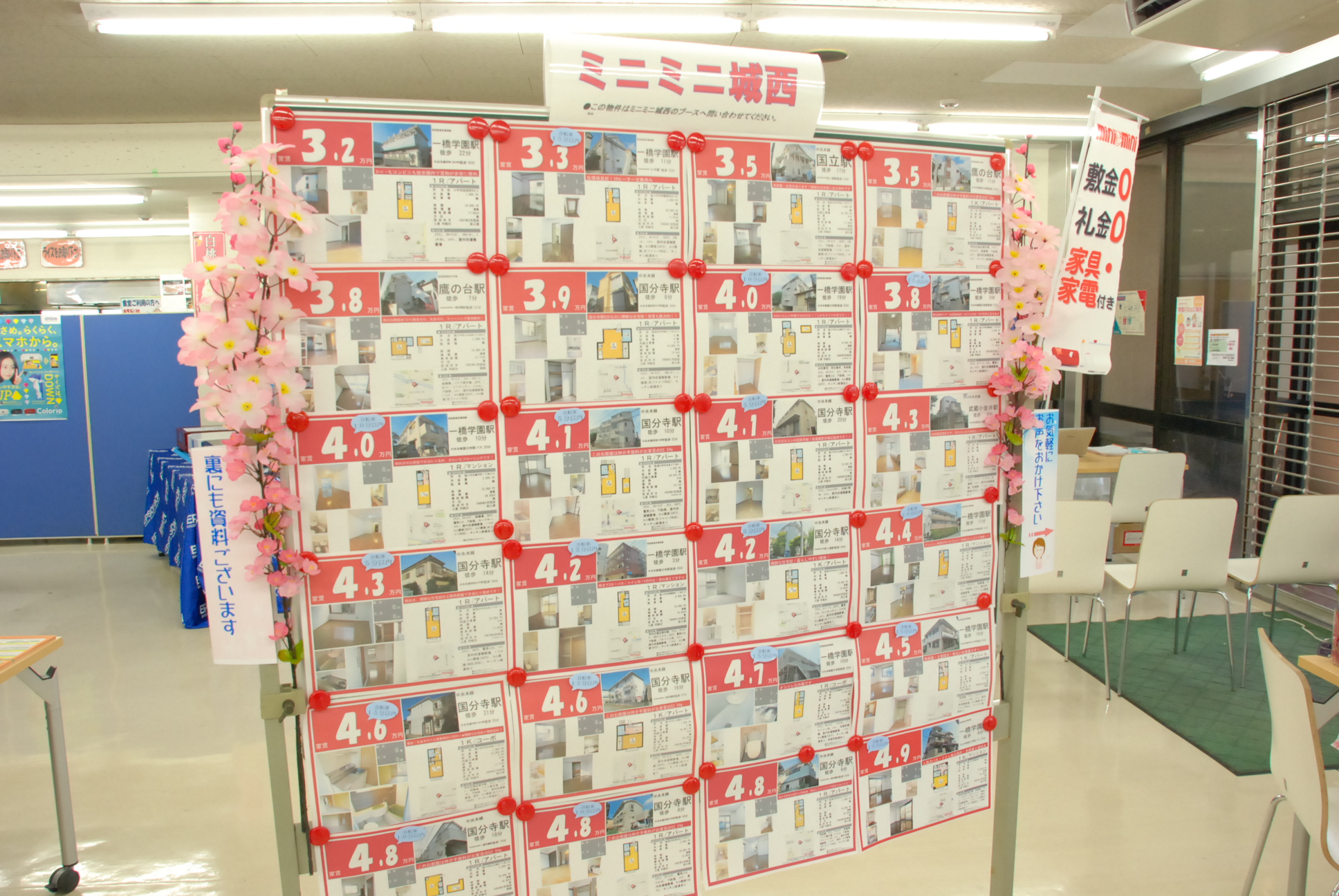 また、大学キャンパスへお部屋探し以外に御用の無い方は、JR中央線国分寺駅から程近いのミニミニ国分寺店でもお部屋探しが可能です。大学周辺の敷金0&礼金0物件を中心に、人気の「家具・家電付き」物件も多数ご用意しております。