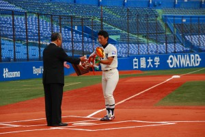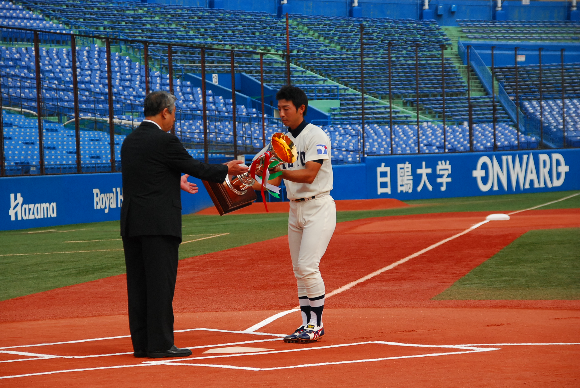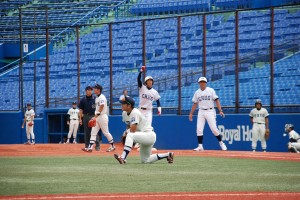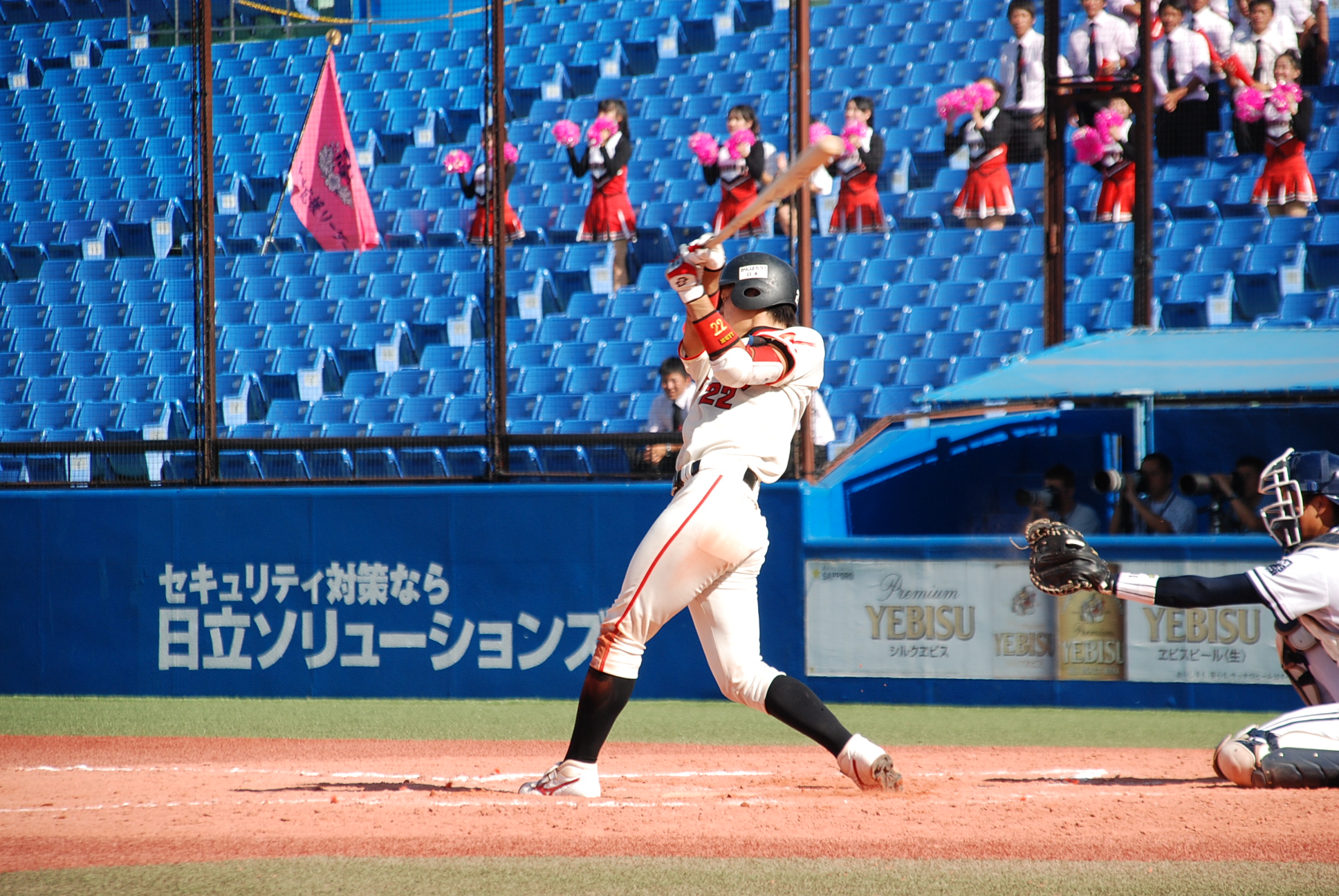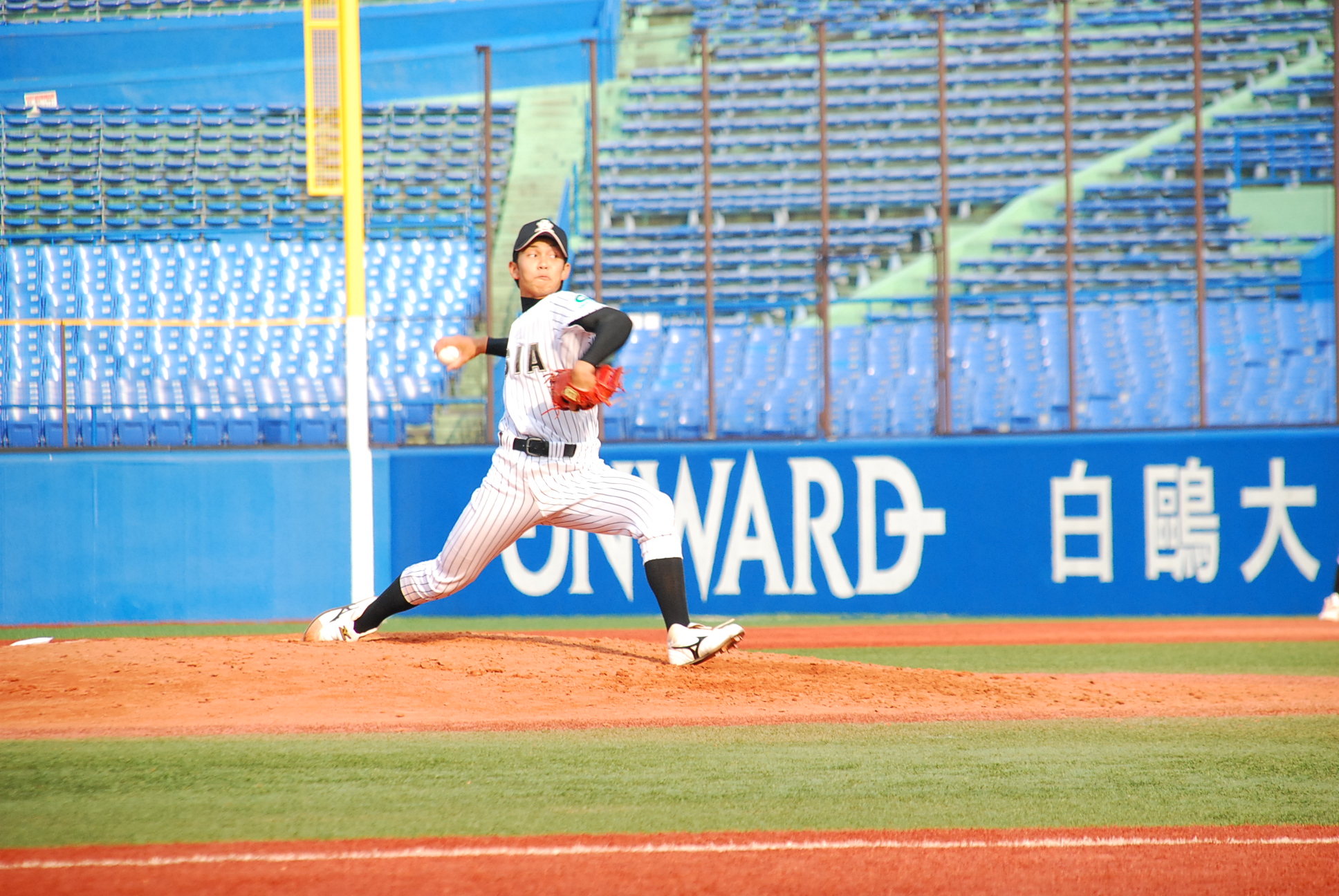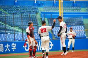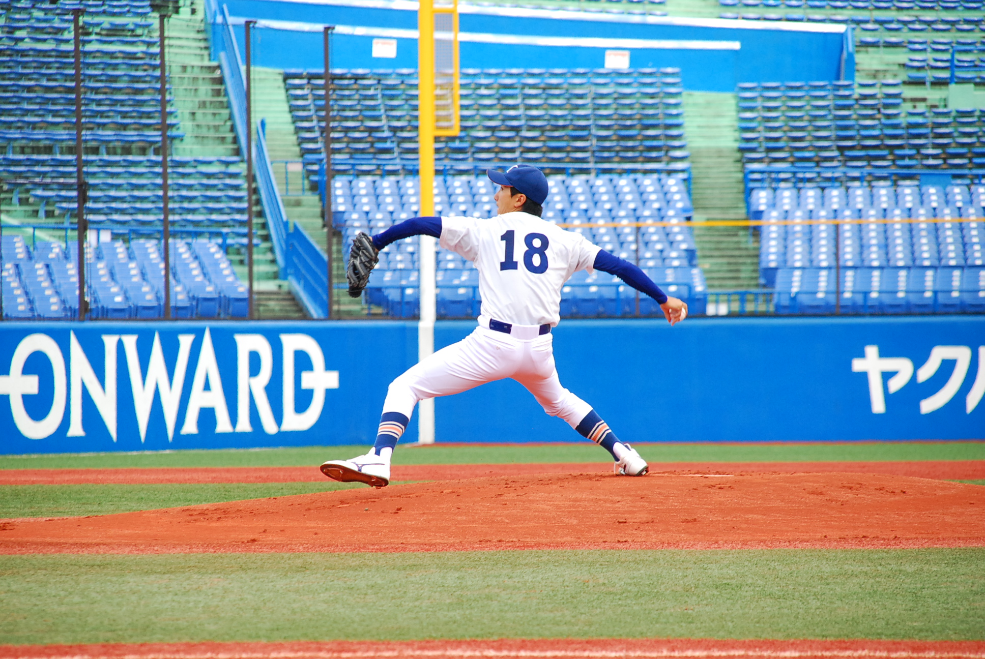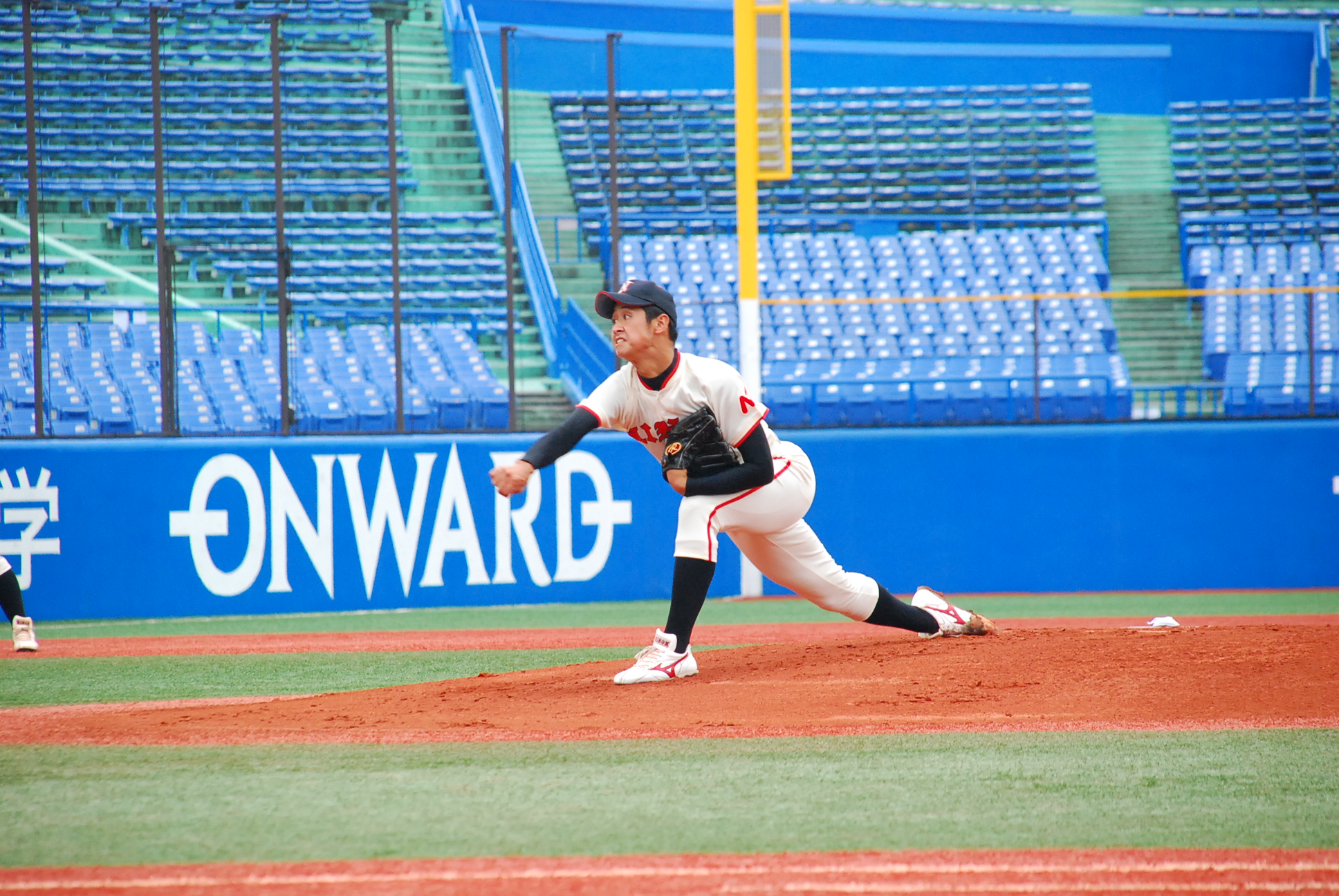 7回に意地を見せた日本大学も反撃はここまで。逆に8回には、死球からセンター・井上選手のエラーと犠牲フライにより東洋大学が2点を追加。その後、東洋大学先発・藤岡投手は日本大学打線をノーヒットに抑え、完投勝利で2勝目。120球の熱投は三振が「5」といつもより少ないながらも、被安打「3」はさすが。13安打と打線も繋がり、王者の貫禄を見せました。対する日本大学は四死球「9」と投手陣がいまひとつ。ここを修正できるかが今後の「カギ」となります。