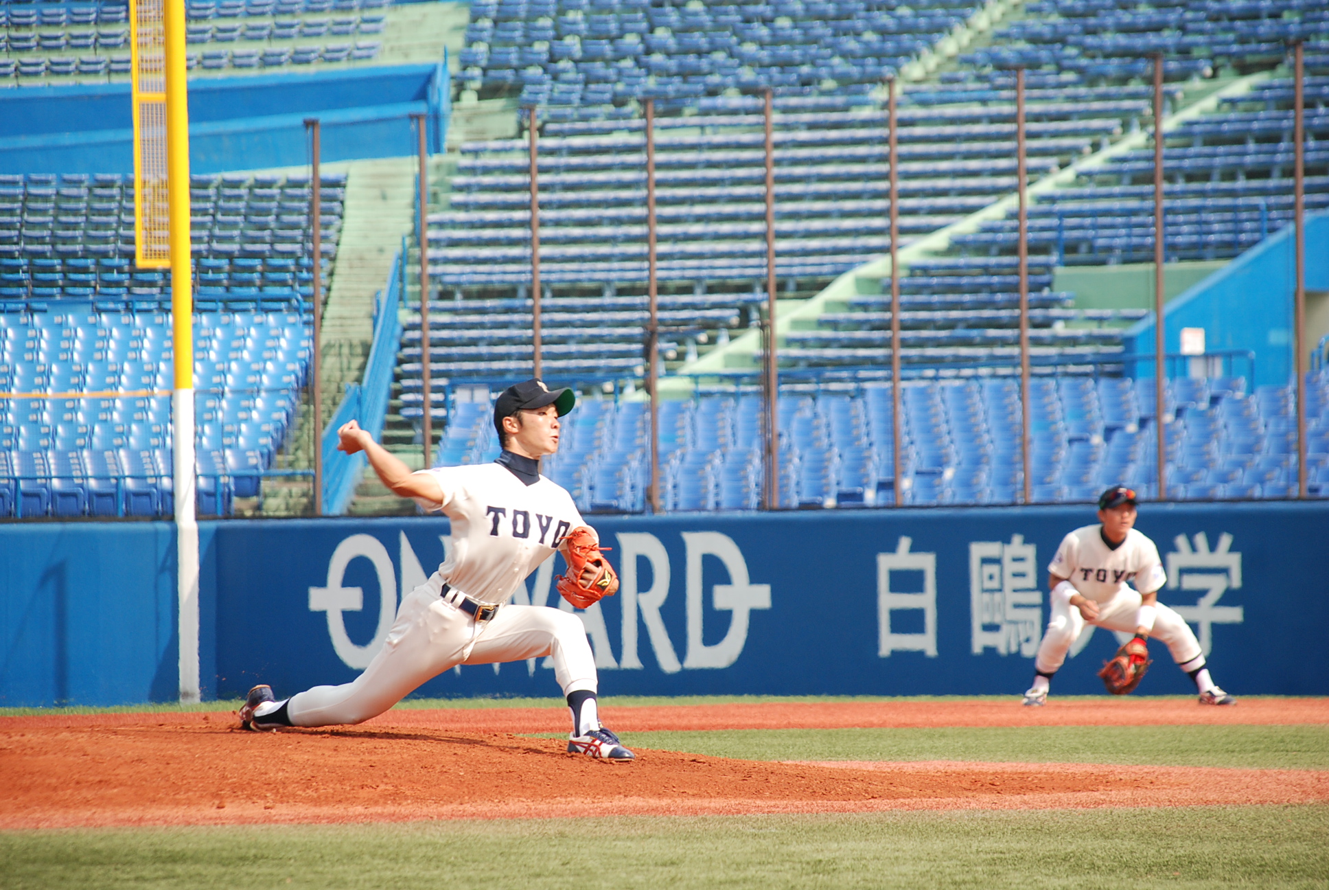 本日、神宮球場にて東都大学野球1部 東洋大学 対 日本大学の試合が行われました。東洋大学は中央大学戦での連敗が響き、いまだ4位。リーグ連覇に暗雲が立ち込めています。対する日本大学は2部秋季リーグ戦での優勝により昇格したチーム。東洋大学とは逆に、中央大学に競り勝っているものの、亜細亜大学には連敗。5位に低迷しています。そんな両チーム、日本大学は吉田投手、東洋大学は藤岡投手がマウンドを託させれるエース対決となりました。