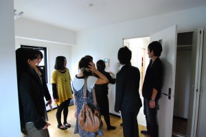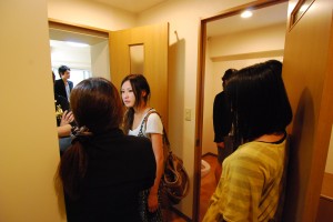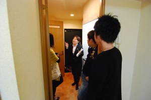 昼食を挟み、午後からは実際にお部屋を内見して頂く、「お部屋見学会」を実施しました。お部屋の設備やキッチンの広さなど、建物の外観を見ただけでは解らない部分を見て頂き、一人暮らしのイメージをより強く、より具体的に持って頂くことができました。