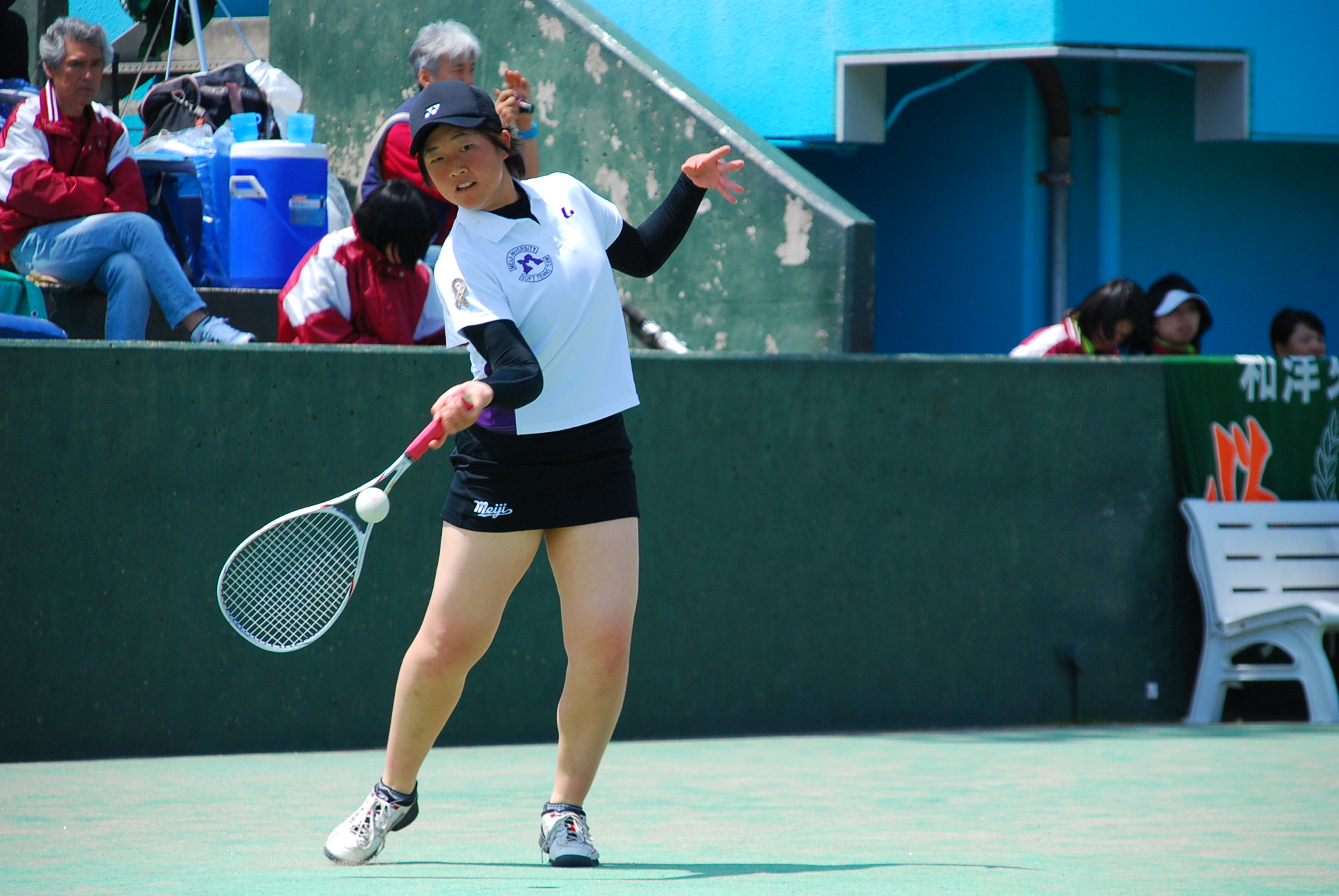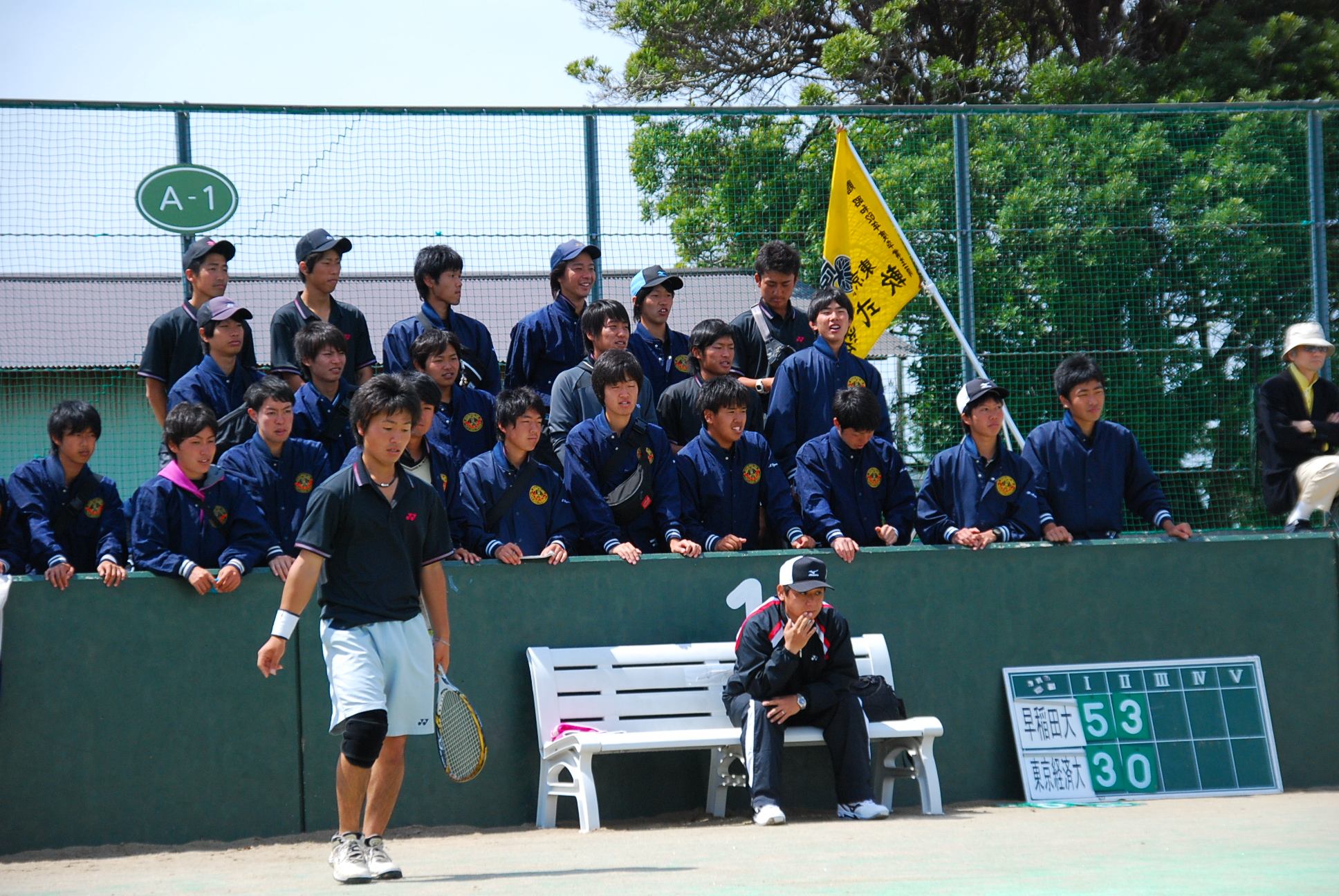 1回は両チームとも3者凡退でしたが、試合は2回に動きます。2回表、拓殖大学は1アウトから5番主将の北條選手がセンターへの2塁打で出塁すると、続く6番・石内選手はファーストライナーに討ち取られるも、7番・鈴木選手が左中間を抜ける貴重なタイムリー2塁打。2塁から北條選手が悠々還り、拓殖大学が先制します。